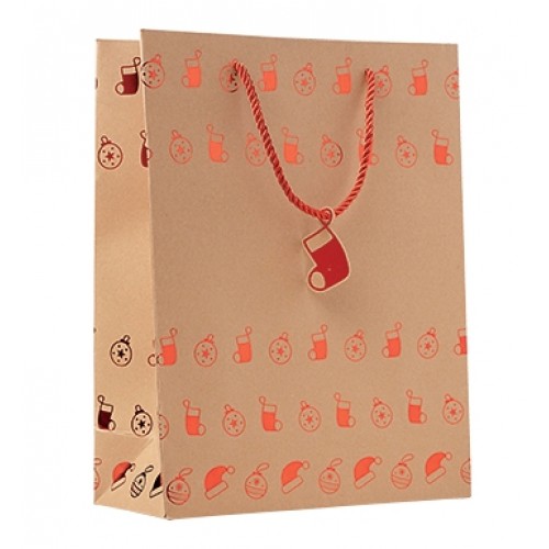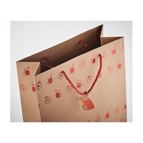 - Featuring matching coloured rope handles and a festive gift tag